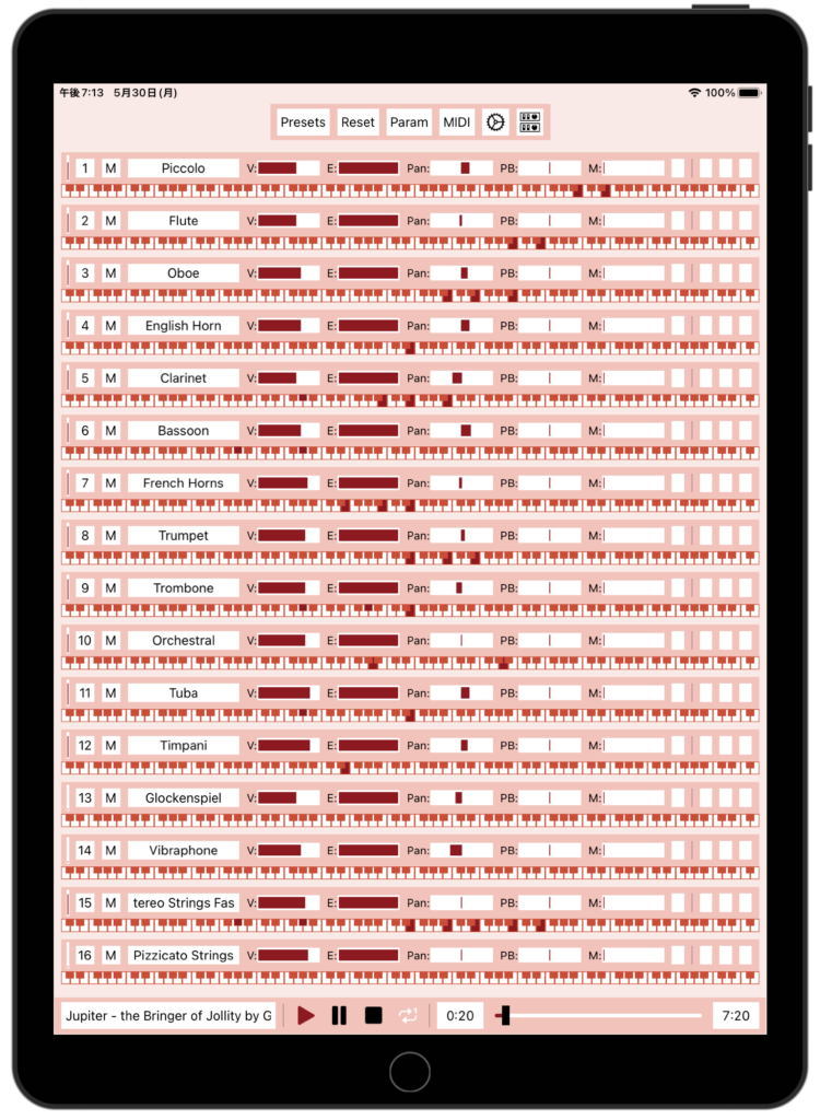 この推奨設定で、開発者のiPhone 6sで問題なくJupiter.midが再生できます。
