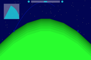 発射された弾は、重力と画面上部に表示されている風の向き・強さ(左右合わせて9種)の影響を受けます。